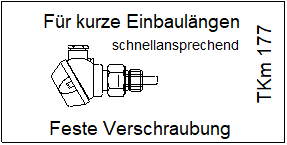 Widerstandsthermometer mit Anschlusskopf Form B mit fest angeschweisstem Einschraubgewinde, ohne Halsrohr, mit auswechselbarem Messeinsatz.