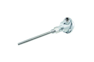 Widerstandsthermometer mit Anschlusskopf Form B mit fest angeschweisstem Einschraubgewinde, ohne Halsrohr, mit auswechselbarem Messeinsatz.